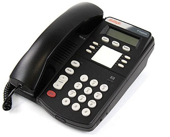 The Avaya 4606 telephone has six programmable feature buttons with LEDs, five fixed feature keys (speaker, mute, hold, volume up, and volume down), and three additional fixed feature keys below the display (conference, transfer, and redial). The display is two characters by sixteen characters with a message waiting indicator above. The 4606 features a full duplex speakerphone with echo cancellation, hearing aid compatibility, Microsoft NetMeeting compatibility, an infrared port to support future applications, and downloadable firmware for future updates. The 4606 telephone is desk- or wall-mountable. Power over Ethernet (PoE) or an 1151B1 auxiliary power supply is required.